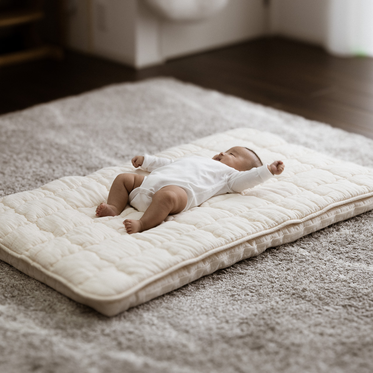 マットレスや防水シーツの上に敷くだけで赤ちゃんにとって心地よいNESTを作ります。