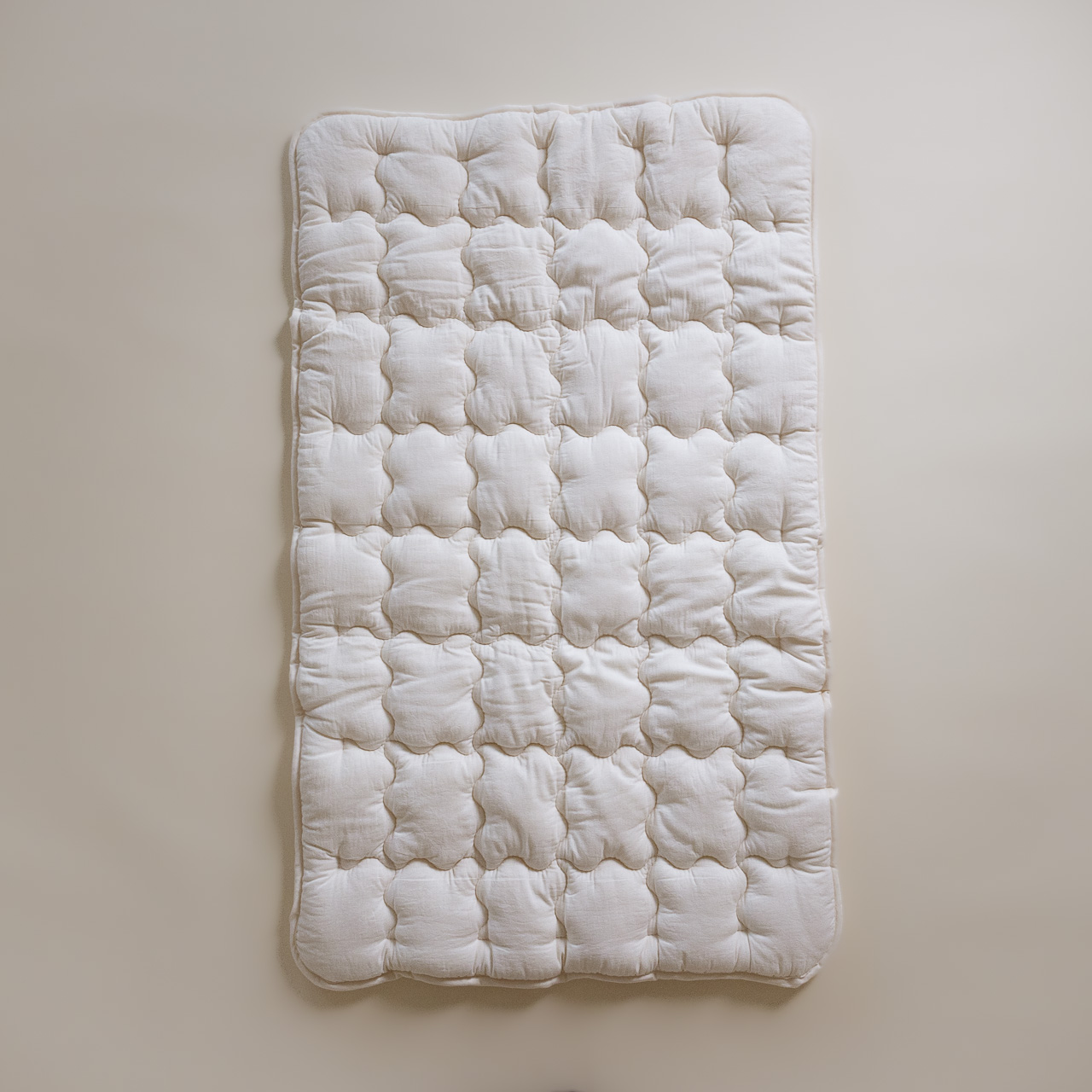 「WOOL NEST PAD」の心地よさを妨げないように、シーツはニットやガーゼなどの通気性に優れた綿100%のものをお選び下さい。