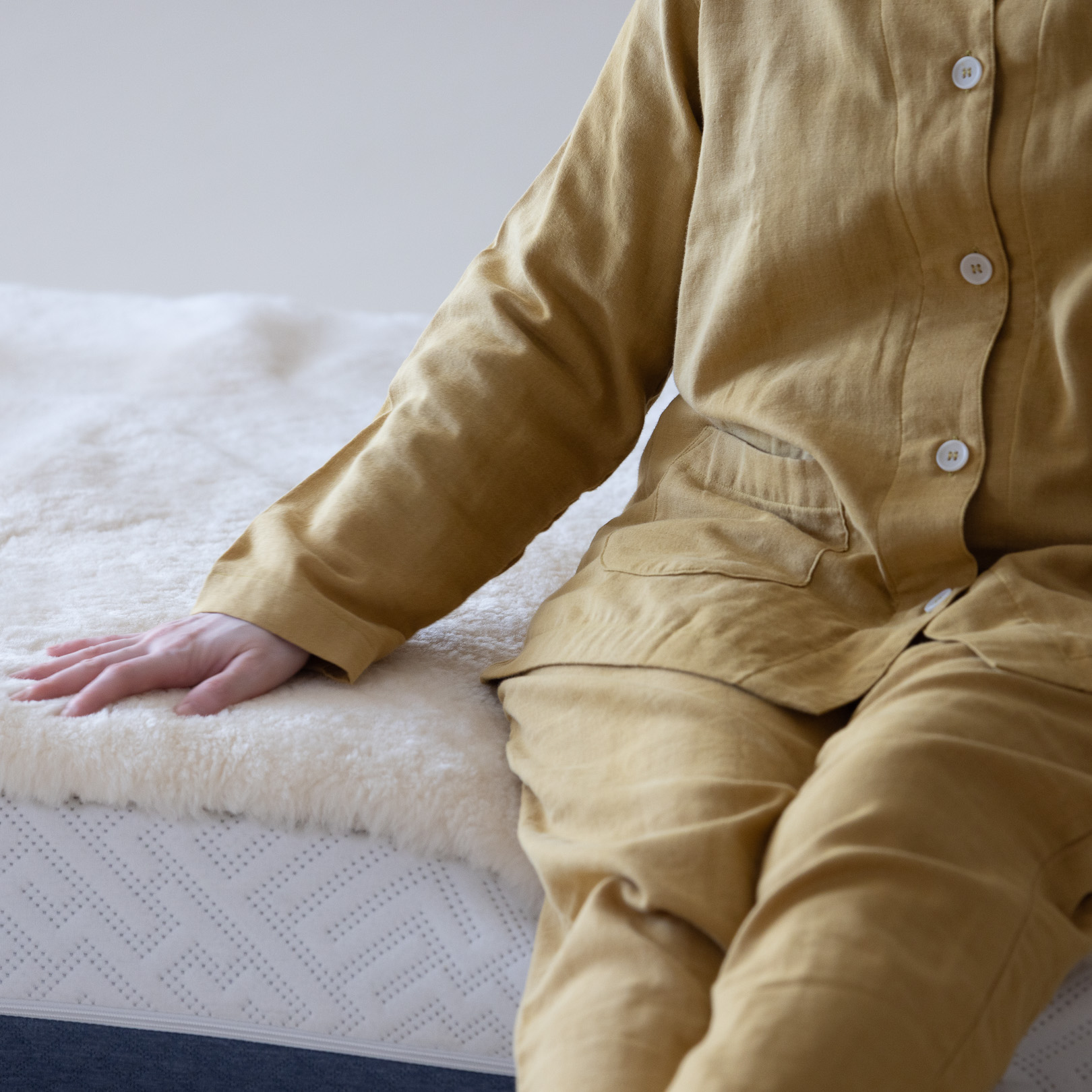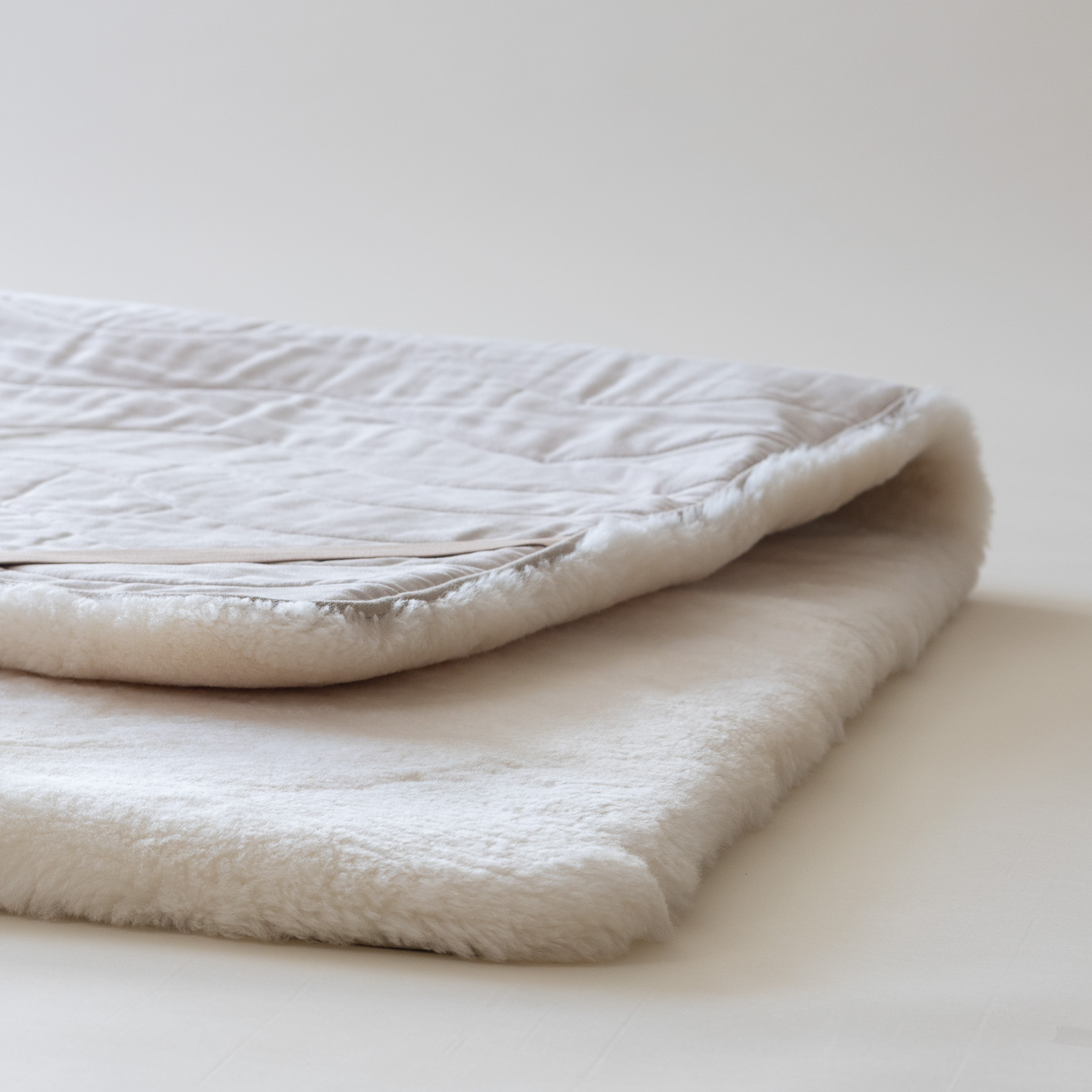 ムートンは毛の柔らかさに特化したスプリングラム系と、腰の強さを訴求したショーンラム系に分かれます。どちらにも良さがありますが、スプリングラム系はしなやかで繊細な風合いと引き換えに毛が寝やすい(ヘタリやすい)というデメリットがありますので、「毛が寝にくいものが欲しい」「しっかりと体重を支えてくれるものが欲しい」とお考えの方はショーンラム系がオススメです。